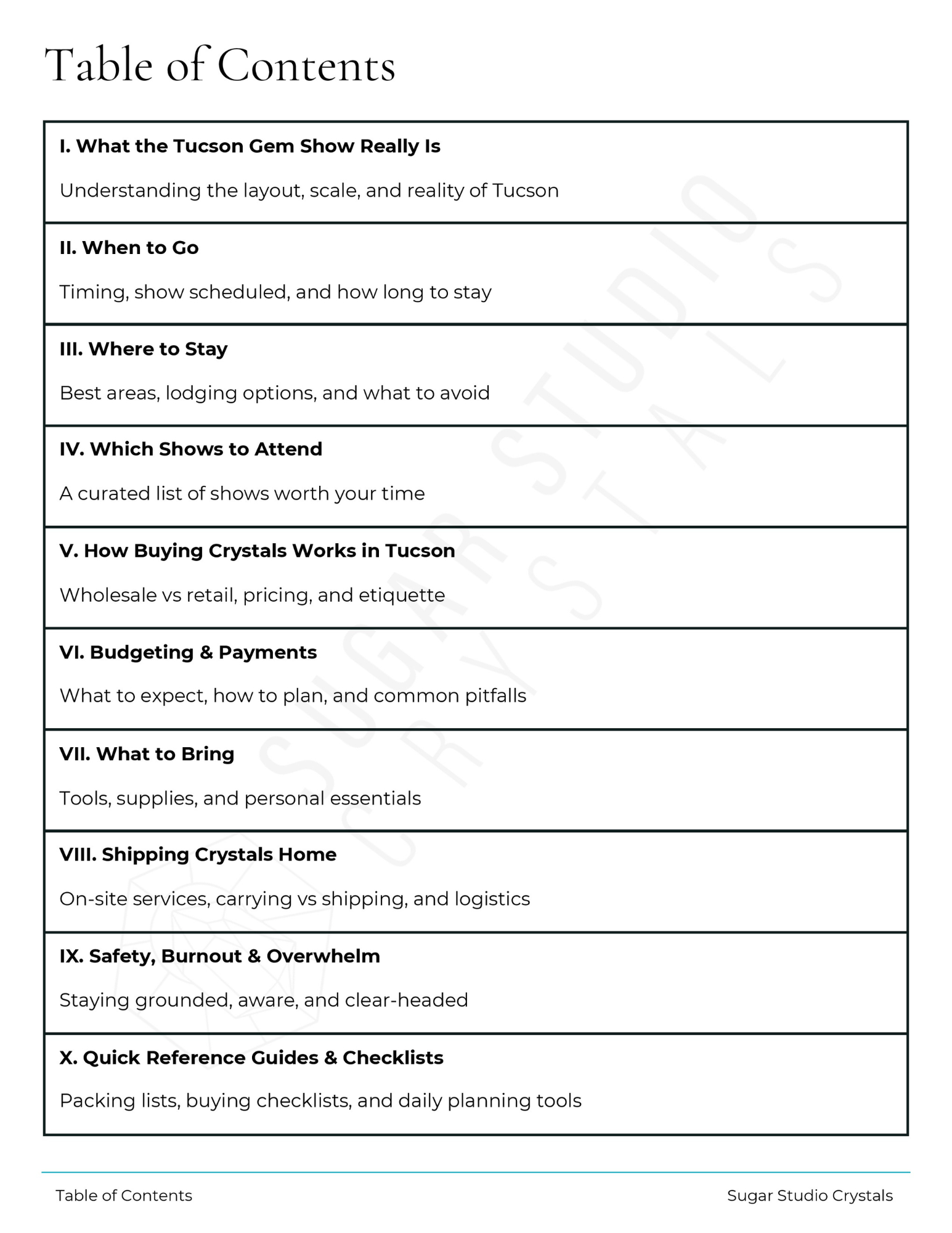 Drawing from 9 years of firsthand experience attending the Tucson Gem Show, this guide helps you navigate the shows with confidence. It’s designed for first-time attendees, collectors, and small business buyers who want clarity, ease, and a smoother way to move through Tucson.